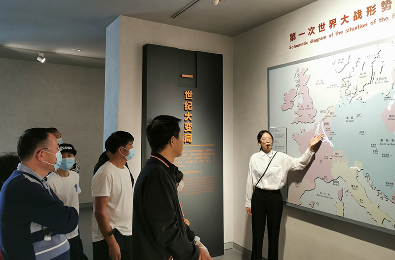 在爱国主义教育环节,集中参观了一战华工纪念馆。该馆是国内首个一战华工专题纪念馆,分为“世纪大变局”“最佳招募地”“万里赴戎机”“遣留何处去”“大潮起东方”等五大部分,展示了一战时期14万华工奔赴欧洲西线战场的历史,以及他们对中国和世界历史的贡献。